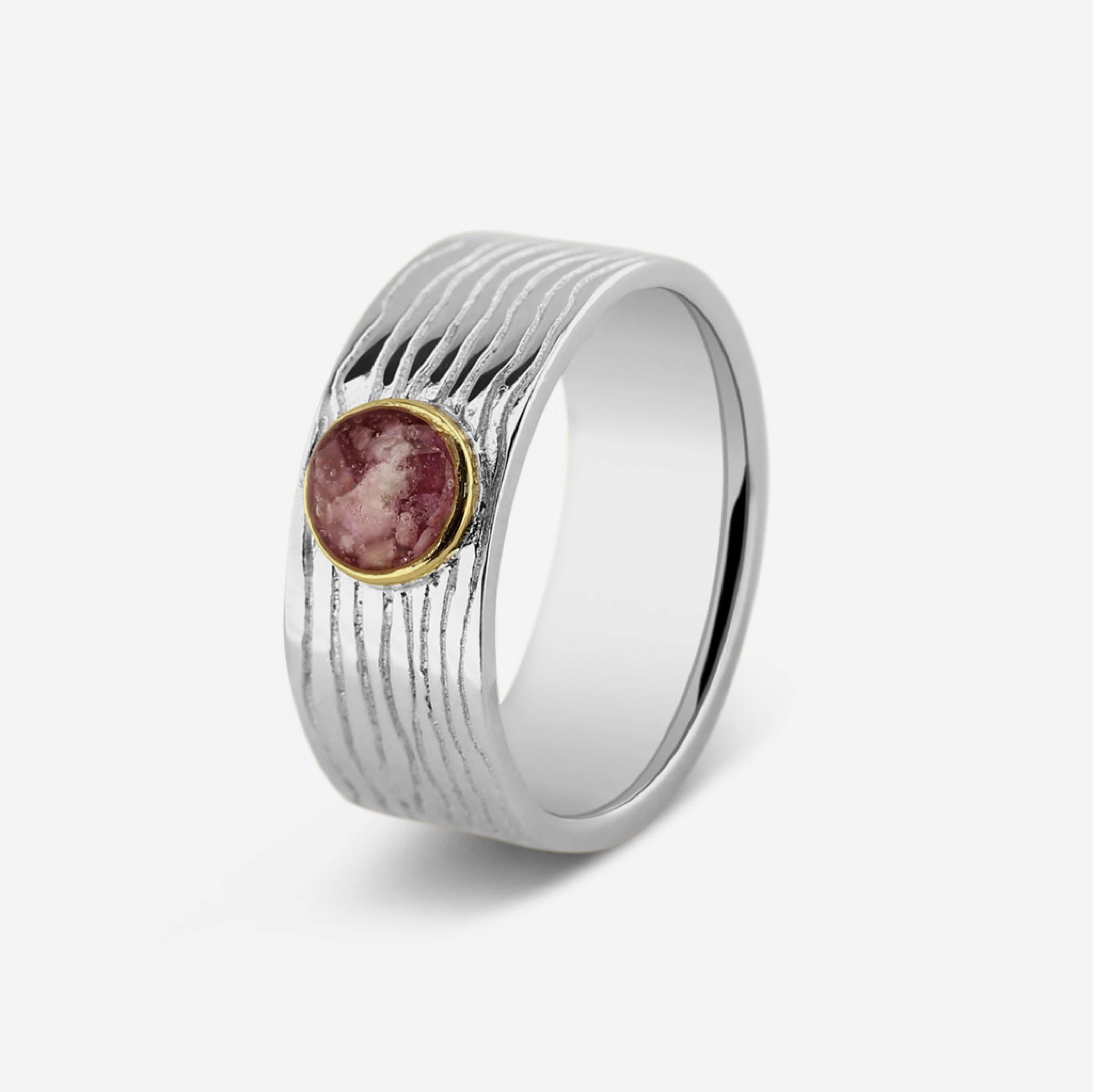 When using ashes or hair, these are combined using a custom process with a special resin that is then set under a UV lamp, ensuring a solid bond. We can make the resin in various colours and can even be specific as to how visible you wish the ashes or hair to be.